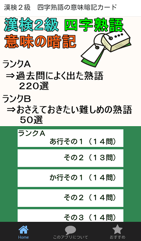 漢検2級 四字熟語 意味の暗記カード 漢字検定2級の過去問 APK -informatie
