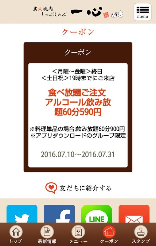 福井県越前市【炭火焼肉しゃぶしゃぶ 一心】の公式アプリが登場しました!