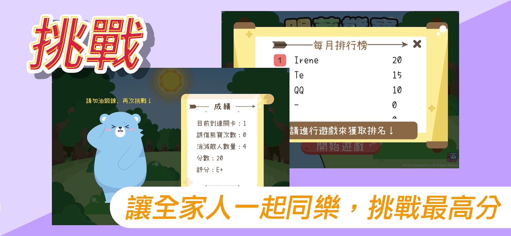4、 挑戰-讓全家人一起同樂,挑戰高分。