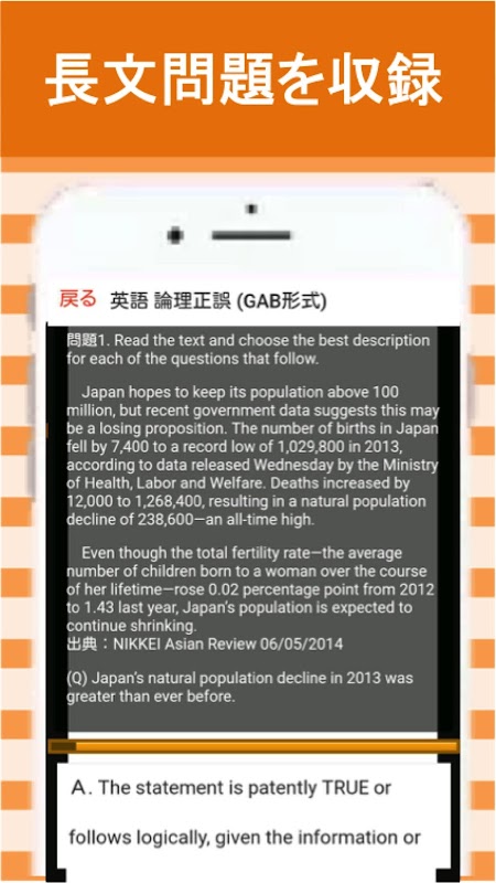 GAB形式の「言語」科目を英語にしたもの。選択肢さえ理解すればそれほど難しくありません。
