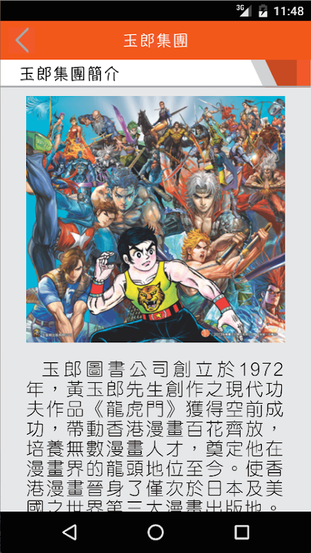 玉郎圖書公司創立於1972年,黃玉郎先生創作之現代功夫作品《龍虎門》獲得空前成功,帶動香港漫畫百花齊放,培養無數漫畫人才,奠定他在漫畫界的龍頭地位至今。使香港漫畫晉身了僅次於日本及美國之世界第三大漫畫出版地。