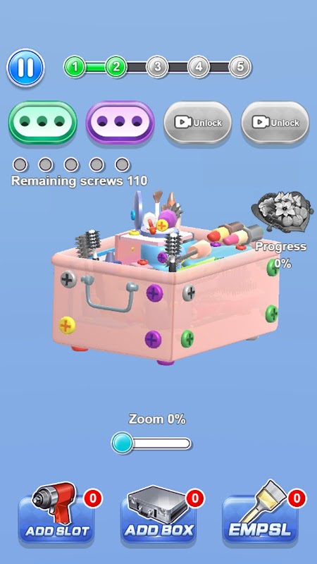 De moeilijkheidsgraad van het verwijderen van schroeven neemt ook sterk toe, wat spelers ongetwijfeld continu nieuwe en opwindende ervaringen biedt. Daarnaast beschikt de game over een uitgebreid rekwisietensysteem, waardoor spelers gemakkelijk uitdagende puzzels kunnen oplossen met behulp van diverse magische voorwerpen.