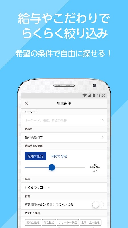 正社員求人など、福岡市内の様々な求人情報を検索できるアプリです。