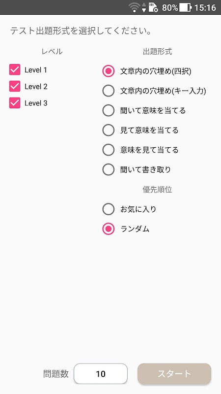 ・ U kunt kiezen uit Engels -> Japans, Japans -> Engels vraagformaat om in verschillende stijlen te studeren.