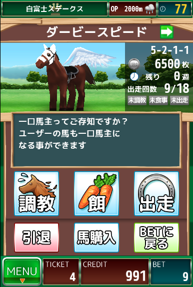 全国大会も毎日開催で目指せ日本一!競馬メダルゲーム+育成シミュレーションの決定版!