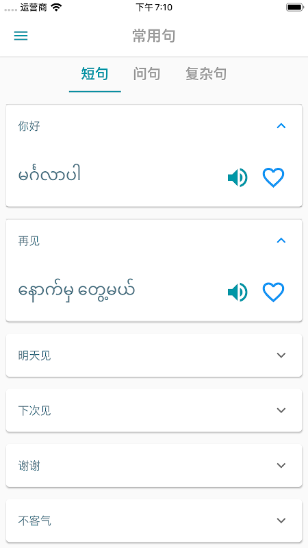 2、配音注重真实感,可降低你对“现实对话”的恐惧感,是你开口说缅甸语的得力助手。