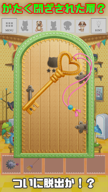 ・各ステージ毎にイヌのぬいぐるみを5匹集めると「鍵」と「脱出扉」が出現しクリアになるよ。