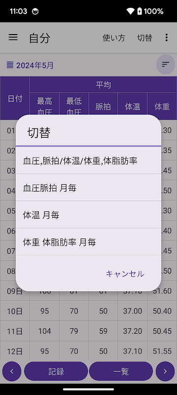 血圧 脈拍 記録帳 血圧と脈拍を記録しグラフを表示するアプリ 24.8.110
