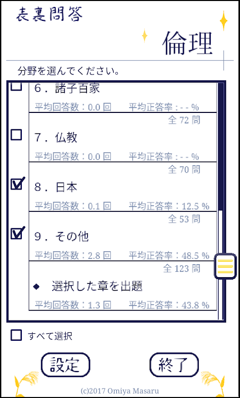 Als u het probleem met "code" kunt oplossen, vink dan "willekeurig" aan. De problemen komen in willekeurige volgorde naar voren, zodat je de vage delen van je geheugen kunt zien.