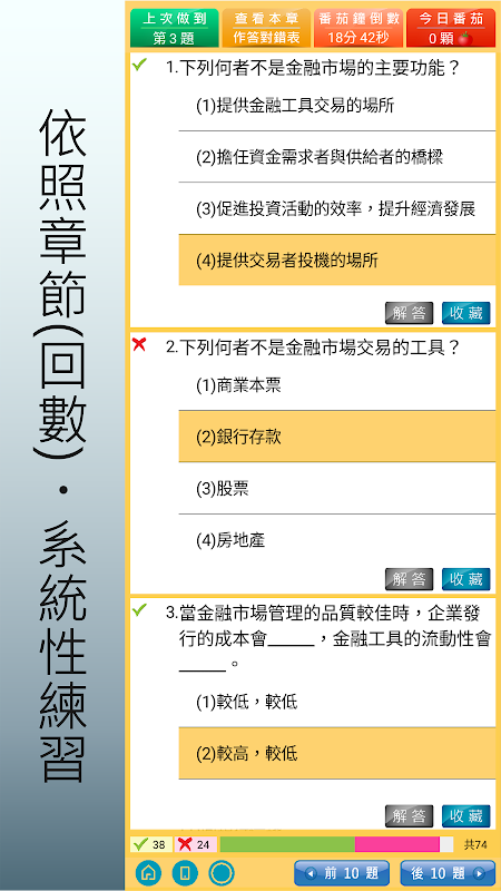 做題練習:即時顯示對錯,自訂題目收藏清單。