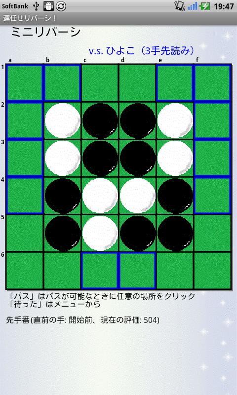運任せリバーシがない代わりに詰めリバーシがある 6x6 リバーシも用意しています。合わせてお遊びください。
