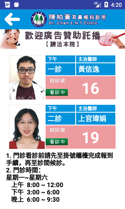 提供本院即時就診燈號、門診時刻表、關於本院、本院最新消息、醫療團隊介紹、交通資訊等服務,歡迎民眾踴躍下載使用。