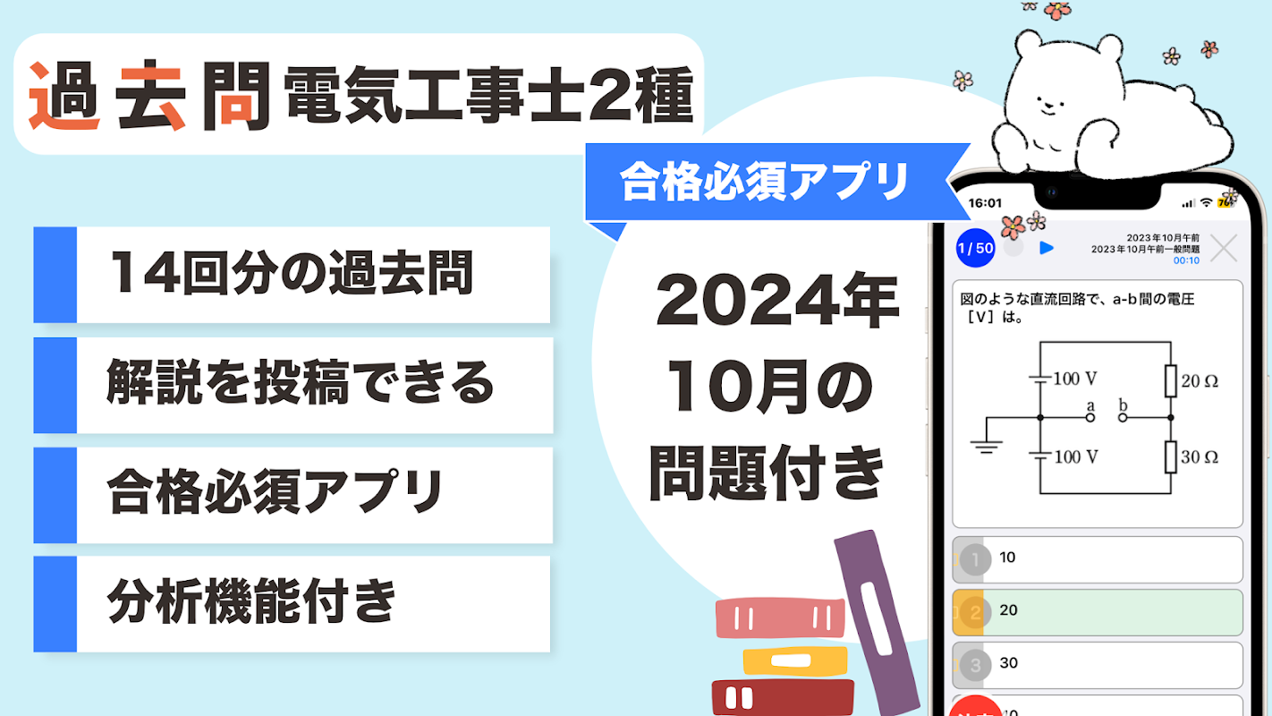 Wordt geleverd met 2020 Reiwa 6e klas vragen voor elektriciens en een proeftestfunctie. Een onmisbare app voor het behalen van het nationale examen voor elektriciens Type 2. Je kunt altijd en overal studeren. Twee soorten gratis apps voor elektriciens die uitleg posten.