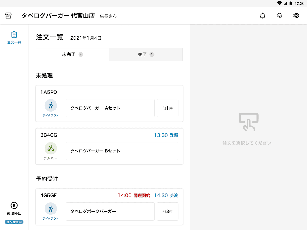 食べログテイクアウトお店向け管理アプリのメイン機能