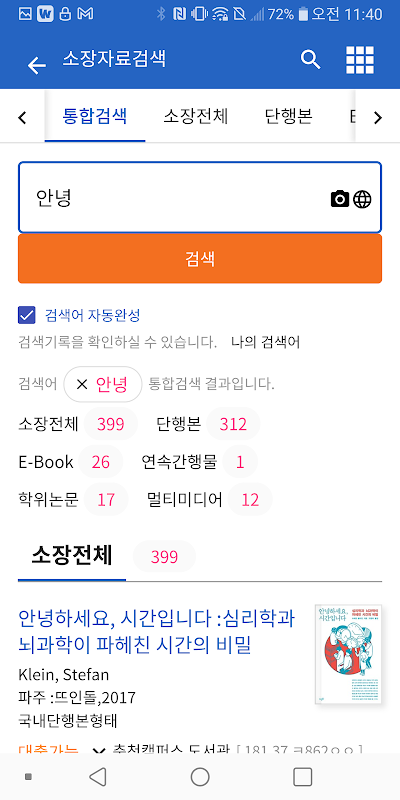 U kunt de details van de collectie en de status van boeken bekijken door te zoeken in de bibliotheekcollecties van Kangwon National University en een reserveringsservice bieden voor de uitgeleende materialen.