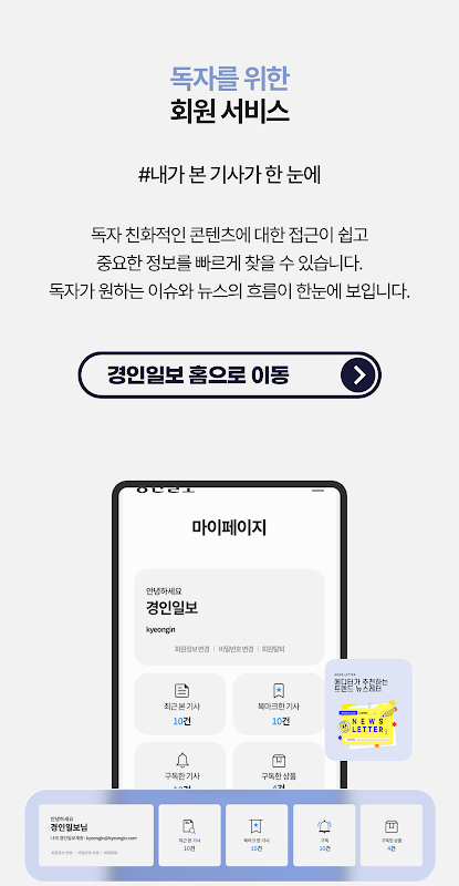 Is het moeilijk om naar het nieuws te kijken omdat er te veel is? Geniet dan van ‘abonnementsinhoud’ bij Gyeongin Ilbo. Iedereen die zich registreert als lid heeft toegang tot verschillende artikelen en verslaggevers van Gyeongin Ilbo. Via een abonnement kunt u eenvoudig Kyungin Ilbo nieuwsbrieven zoals ‘Early View’ en ‘Individual Story’ bekijken, evenals seriële projecten zoals ‘Reporters’ Memories’, ‘Undisclosed Notebook’ en ‘Interview Empathy’. Als u zich abonneert op een verslaggever waarin u bijzonder geïnteresseerd bent, kunt u een verzameling artikelen van uw favoriete verslaggevers bekijken op de nieuw aangemaakte verslaggeverabonnementspagina.