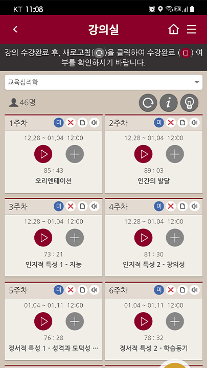 고려사이버대학교의 강의를 스마트 디바이스에서도 수강할 수 있도록 제공하는 스마트 캠퍼스입니다.