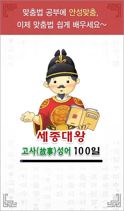 100일동안 열심히 고사성어 퀴즈 게임에 도전해 보세요.