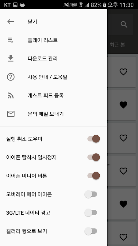 최신, 검색, 순위, 즐겨찾기, 히스토리를 기준으로 하여 팟 캐스트를 관리 할 수 있는 어플입니다.