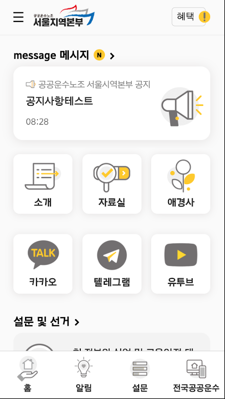 De app voor het regionale hoofdkantoor van de openbaarvervoersvakbond in Seoul.