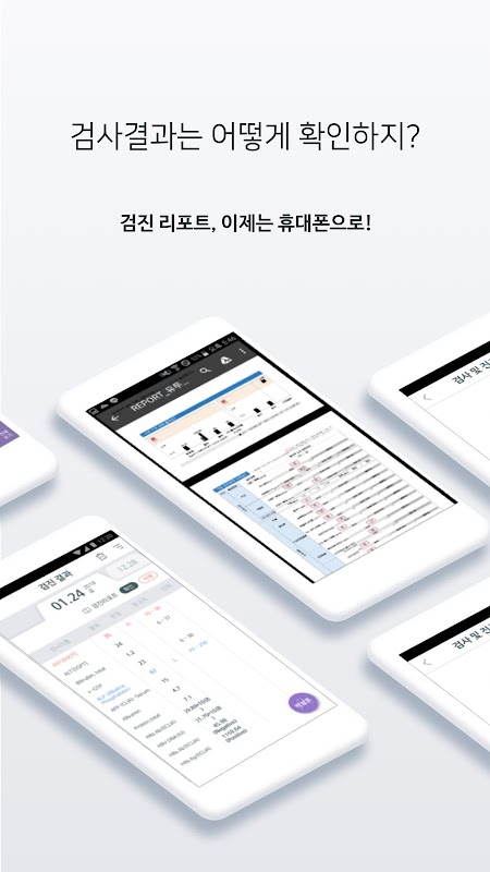 병원에서 받은 검사결과와 건강검진 결과 리포트가 휴대폰으로 쏙쏙 들어와서 쉽고 빠르게, 언제 어디서나 검사결과를 확인할 수 있습니다.