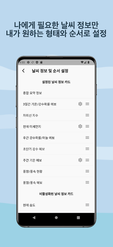 - Weergegevens maken gebruik van informatie van het Ministerie van Milieu, Korea Environment Corporation (Air Korea) en de Korea Meteorological Administration, die worden ontvangen via de Korea Public Data Portal (https://www.data.go.kr) API. Deze app gebruikt informatie met toestemming van de relevante instantie. Houd er rekening mee dat deze app geen overheidsinstantie vertegenwoordigt.