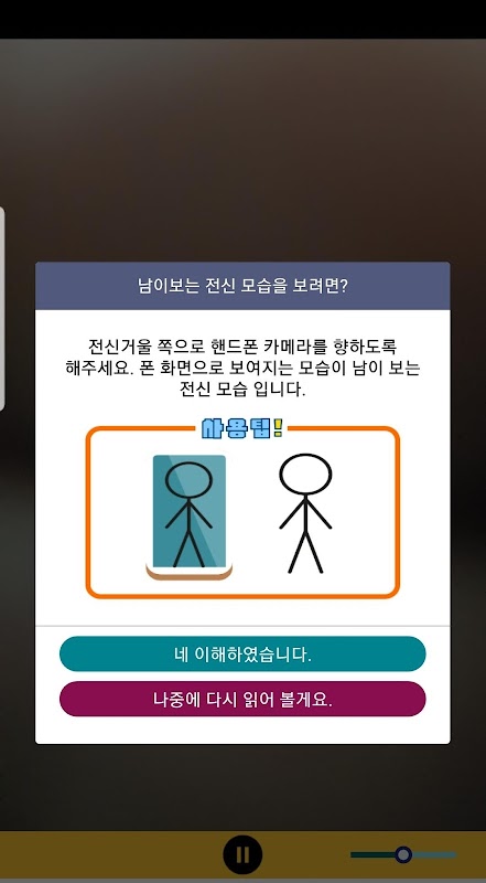 - 핸드폰을 거꾸로 돌려 화면을 확인하세요. 나의 입과 얼굴을 더 자세히 볼 수 있는 모드 입니다.