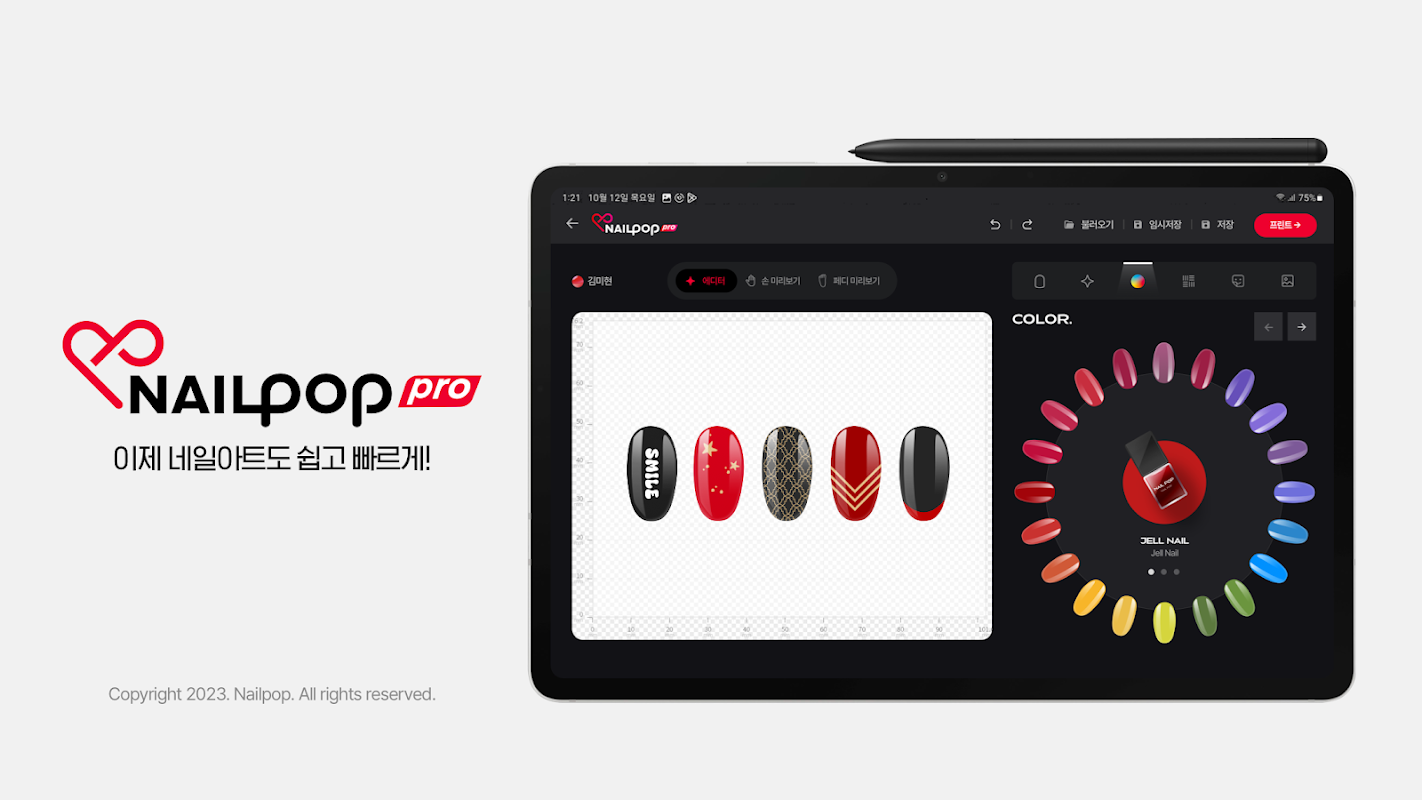 Maak je geen zorgen meer over nail art. Gemakkelijk en snel, een zee van allerlei soorten nail art. Gelijkmatige kleuruitdrukking op transparant papier. Het begin van een premium mailsalon. Nail Pop Pro begint.