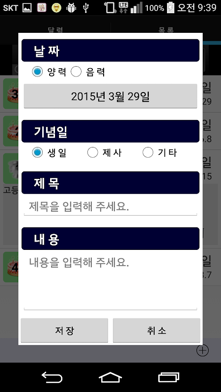 - 저장소 사용 권한(기념일 저정을 위해)을 획득하지 못해 종료하던 오류 였습니다. 수정완료 되었습니다.