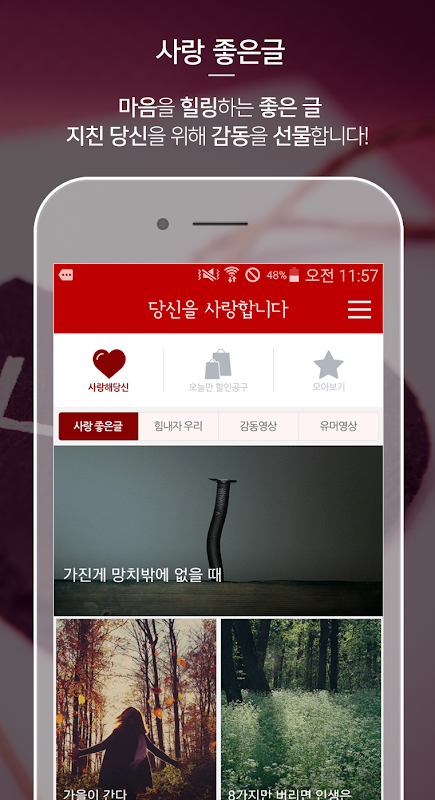 사랑에 아파하고,사랑으로 행복한 당신에게 드립니다.감동글, 좋은글, 힐링영상으로삶에 지친 당신께 소중한 하루를 선물해드립니다