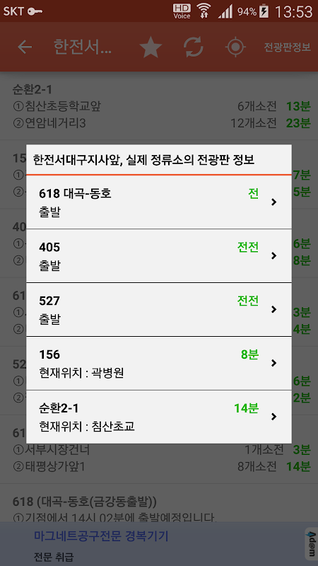 * Daegu bus aankomstinformatie laatste versie * Beknopte, nauwkeurige UI / UX * Toegevoegd de functie van het weergeven van elektrisch bord
