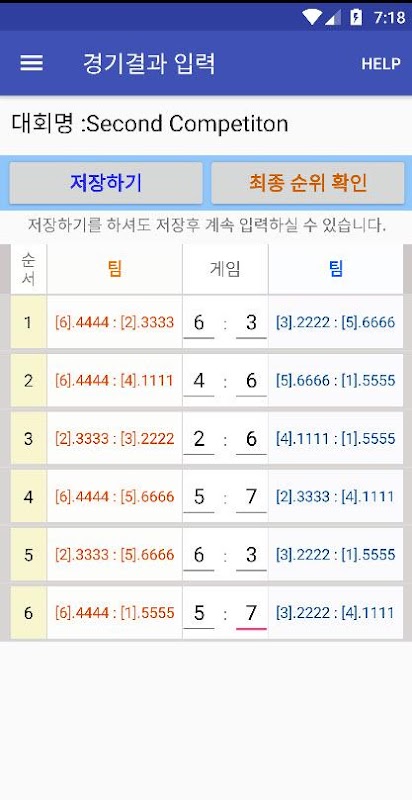 4. Resultaatbeheerfunctie voor elke wedstrijd (kan op elk moment worden gecontroleerd en ingevoerd)