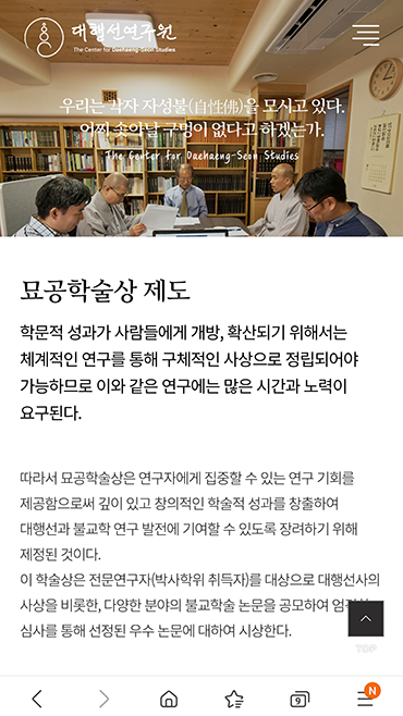 많은 사람에게 대행선사의 가르침과 생애를 체계적으로 조명하고 폭넓게 알리며, 또한 마음의 원리와 작용을 쉽게 이해하여 실천 할 수 있도록 널리 보급하기 위해, 우리 연구원에서, 온라인 법석을 열게 되었습니다. 이 홈페이지를 통해 자성불 지혜를 증득하는 인연 맺게 되기를 바랍니다.