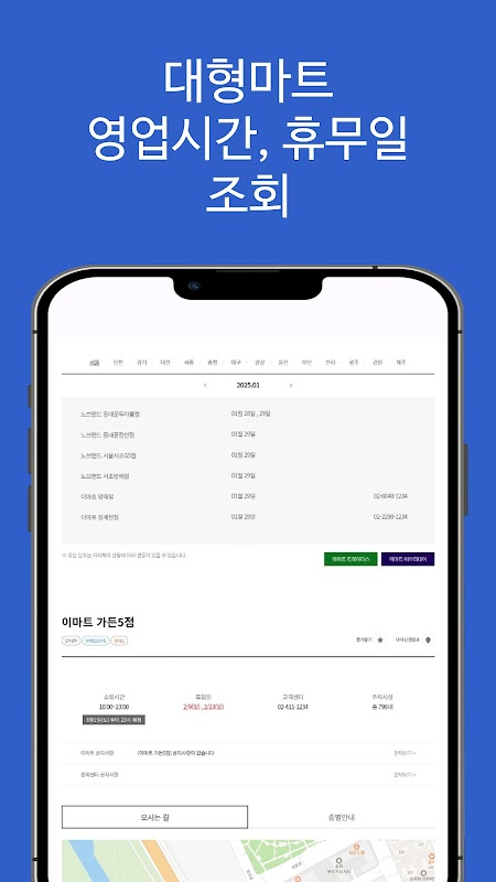 Over 대형마트 영업시간, 휴무일 찾기 앱