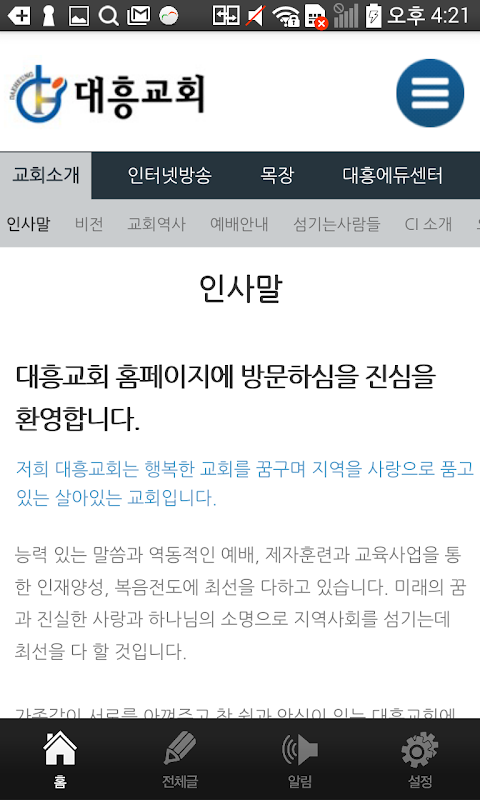 대흥교회 홈페이지에 방문하심을 진심으로 환영합니다.