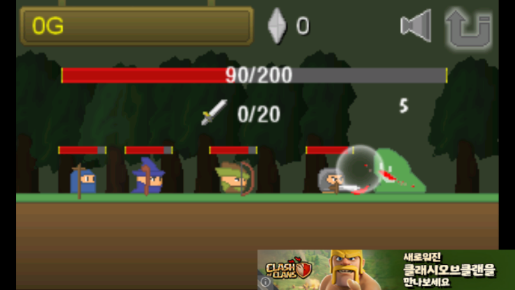 돈과 보석을 모아 다음 스테이지의 강한 괴물들을 잡는게 목표인 게임입니다.