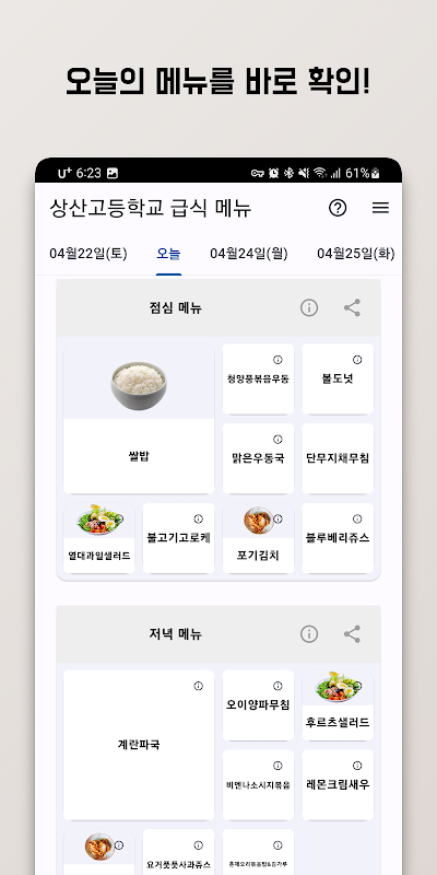 Oude versies van 띵 급식 알리미 - 초등,중,고등학교 급식 실시간 제공