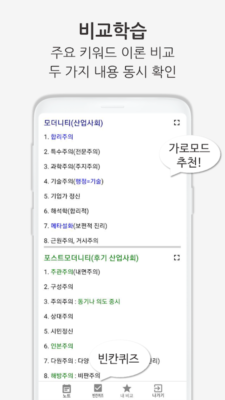 - '빈칸퀴즈'버튼으로 주요 키워드 빈칸 맞추기 퀴즈 학습이 가능합니다.