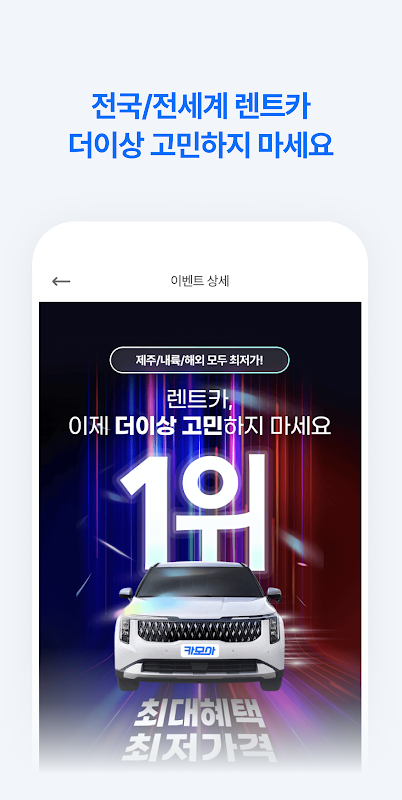 렌트카 가격비교 1등 앱, 카모아를 지금 업데이트 해보세요.