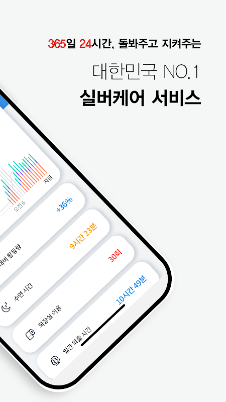 돌봄이 필요한 노인 또는 장애인 대상으로 댁내에 안전 센서를 설치하여 활동량, 수면효율, 외출, 화장실 이용 등의 상태를 감지, 불편사항과 건강 상태 등을 확인할 수 있는 어플리케이션 입니다.