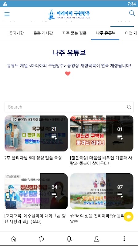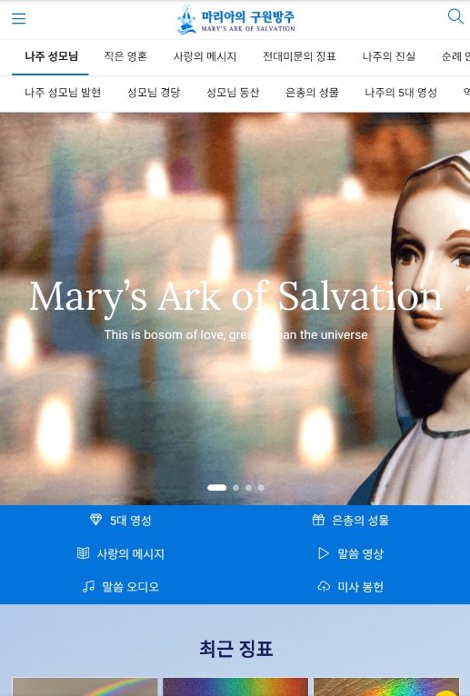 Website-app over de verschijning en het bestaan van de Heer en de Heilige Moeder in Naju, Korea