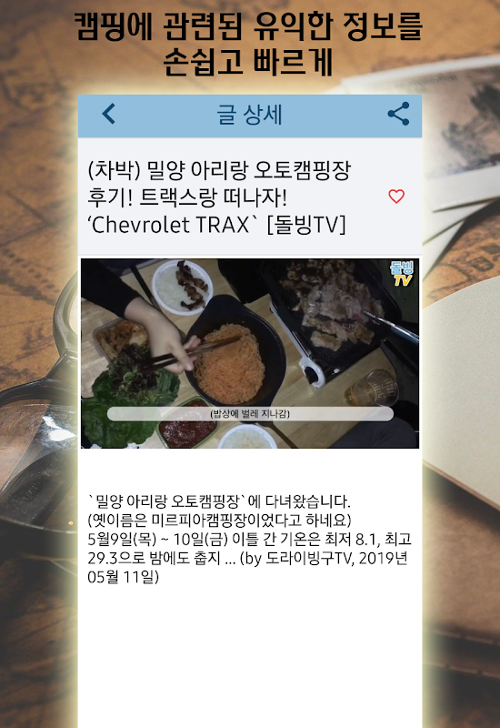 그리고 캠핑여행에 조심할 점, 필요한 장비, 캠핑명소에 관해서도 200여개의 영상을 준비했습니다.