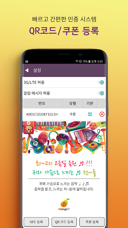 [Settings] NFC / QR code / coupon registratie, kennisgeving On / Off