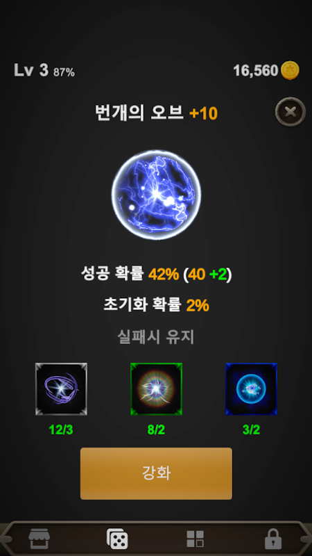 뽑기로 강화재료를 모으고, 강화로 오브를 성장시키세요. 오브를 성장시킬수록 뽑기보상이 더욱 좋아집니다!