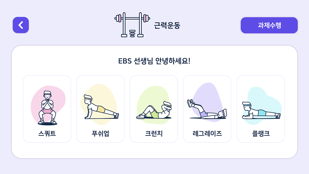 Studenten kunnen hun aërobe inspanningsgegevens meten met behulp van de aërobe inspanningsmeter in de app en vijf soorten krachtoefeningen leren van een op kunstmatige intelligentie gebaseerde AI-oefeningscoach. De resultaten van fysieke activiteit worden omgezet in spelgeld om de avatar van de leerling te upgraden. Leraren kunnen de fysieke activiteiten van leerlingen aansturen en de prestatieresultaten van leerlingen volgen via het menu Leercentrum.