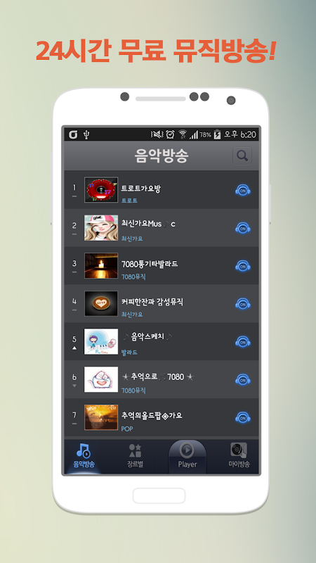 단 하나의 인터넷 라디오 방송! 무료음악감상어플!