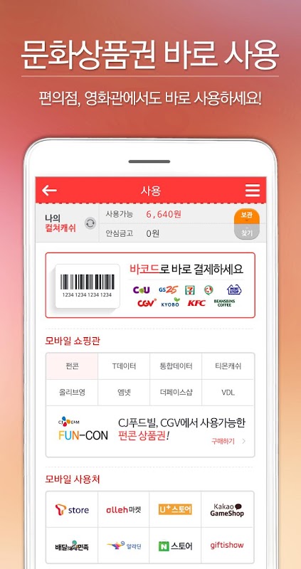 문화상품권 충전부터 편의점, CGV, 교보문고 오프라인 사용!