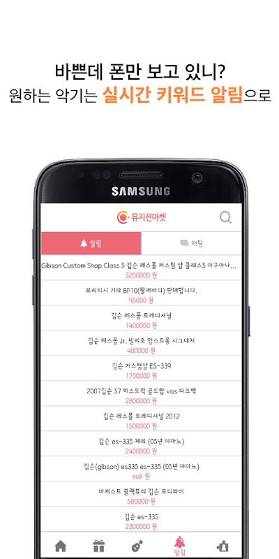 키워드 설정만 해두면 리퍼 악기와 중고 악기 모두 실시간 알림 전송!