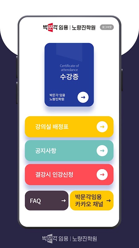 U kunt informatie bekijken over cursuscertificaten, mededelingen, lesdetails, klasopdrachttabellen, enz. die worden verstrekt door de Parkmungak Examination Academy.