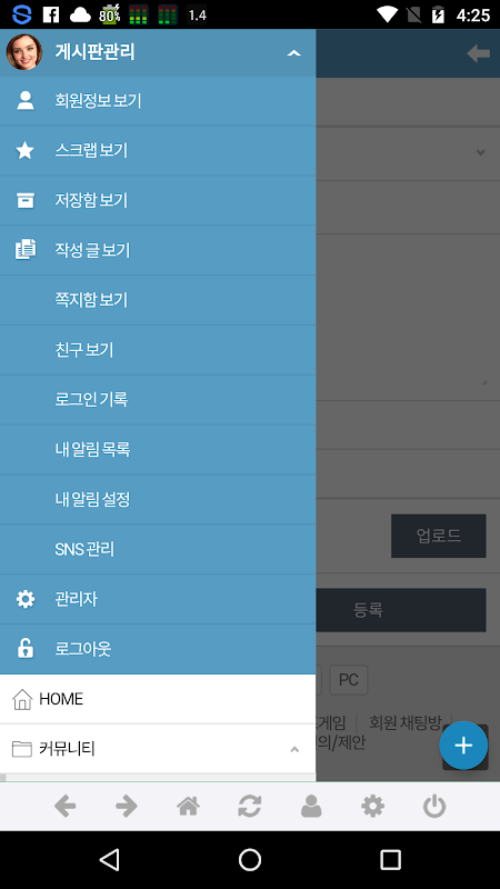 쪽지 및 알람기능이 포함되어있습니다. 누군가 내 글에 댓글을 남기면 스마트폰에서 알람이 울립니다.